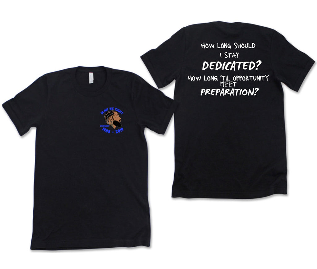 Honor the iconic artist Nipsey Hussle with this "In Nipsey We Trust" black t-shirt. Made from 100% cotton to ensure quality and comfort, A true legend. Show your respect and admiration FOR NIPSEY HUSSLE THE GREAT (TMC).
